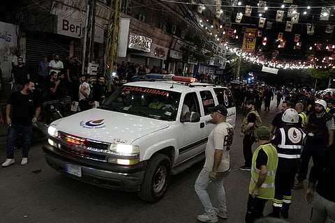 Ambulances arrive to evacuate the wounded near the site of an Israeli airstrike in Beirut's southern suburb.