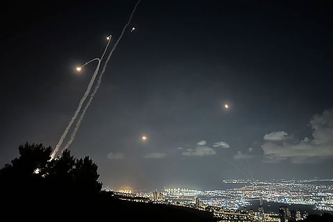Israeli Iron Dome air defense system fires to intercept rockets that were launched from Lebanon, as seen from Haifa, northern Israel.
