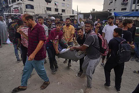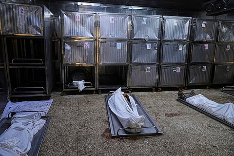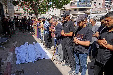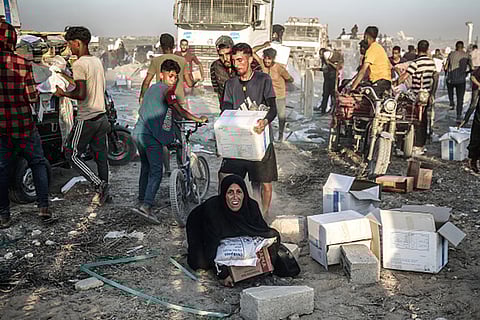 Activist support a sign accusing UAV Engines of supplying drone parts that murdered seven aid workers as they lay on the floor blocking one end of the main road to the UAV Engines factory. UAV Engines are owned by the Israeli defence company Elbit Systems and they provide engines and other parts for drones. Protesters claim that these drones are currently being used by Israelis against Palestinian civilians in Gaza and the West Bank and parts for the drone responsible for killing seven aid workers recently were made at UAV Engines. The protesters also demand arms companies stop selling arms to Israel and contributing to the Gaza genocide.