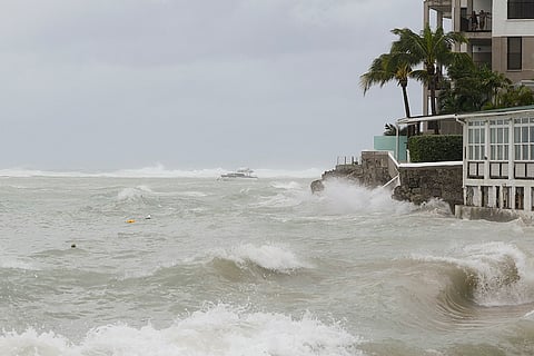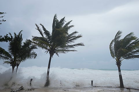 Waves batter palm trees as Hurricane Beryl passes through Hastings, Barbados.