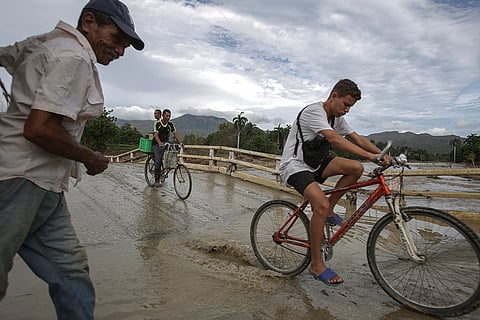 People try to remove mud from a street a week after Hurricane Oscar hit the town of Imiar in Guantanamo province, Cuba.