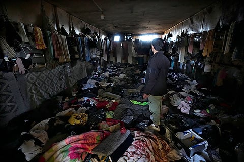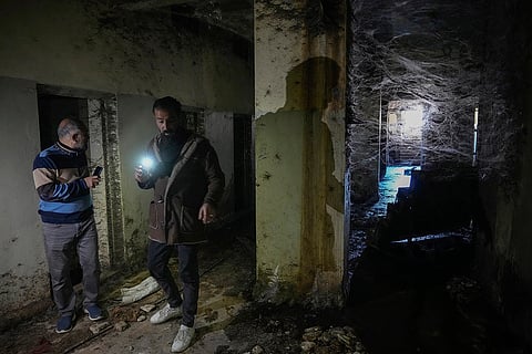 A man breaks the lock of a cell in the infamous Saydnaya military prison, just north of Damascus, Syria. Crowds are gathering to enter the prison, known as the "human slaughterhouse," after thousands of inmates were released following the rebels' overthrow of Bashar al-Assad's regime on Sunday.