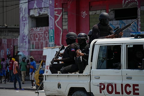 Police patrol the Champ de Mars area of Port-au-Prince, Haiti.
