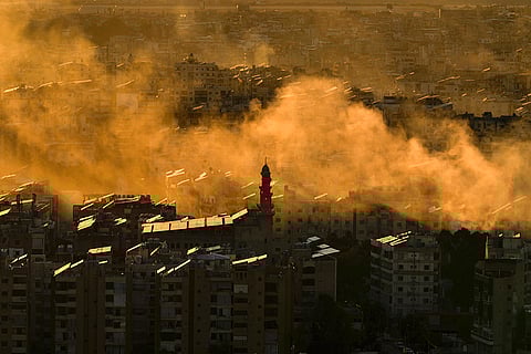 Smoke rises from buildings hit in Israeli airstrikes in Tyre, Lebanon.