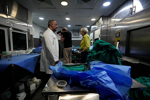 Journalists take a tour inside Sahel General Hospital, in Dahiyeh, Beirut, Lebanon a day after the Israeli army said that Hezbollah is storing hundreds of millions of dollars in cash and gold under the hospital.