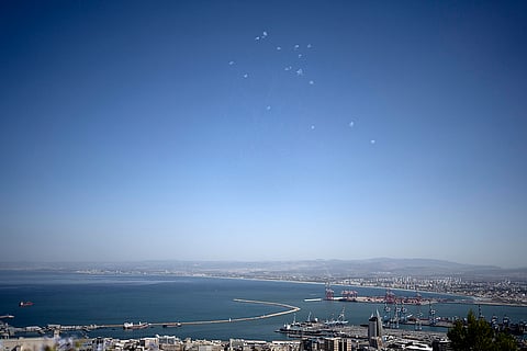 Projectiles fired from Lebanon are intercepted over Haifa, Israel.