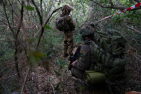 Israeli soldiers are seen during a ground operation in southern Lebanon, near the border with Israel.