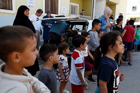 Displaced families fleeing the war in Lebanon, gather at the Herjalleh shelter center in Damascus countryside, Syria.