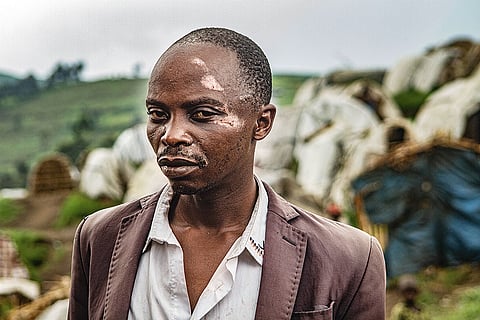 A victim of armed conflict in Nord-Kivu displays a deep scar, a reminder of the violence that has left many injured by gunfire and bombings in the region