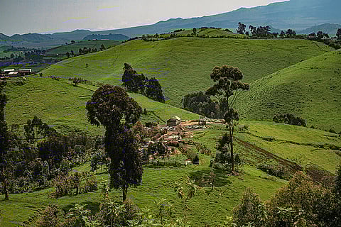 In Ruins: Aerial view of the devastated landscape in the Masisi territory of the East Democratic Republic of Congo, where rebel groups have burnt villages, leaving destruction in their wake in the Nord-Kivu region