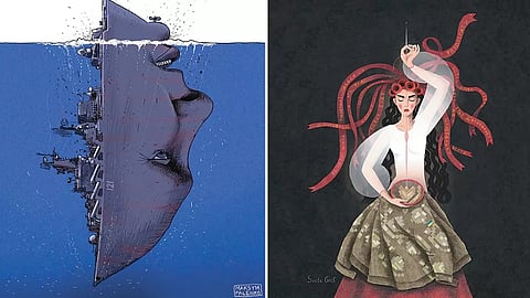 For the past 10 months, Kyiv-based graphic artist Olesya Drashkaba has been making regular entries in a grim notebook that she calls ‘War Notes’. She is keeping tabs so that she could have an exhibition of her collected wartime artworks “once the Ukrainians win the war”.