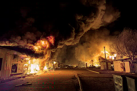 A local market burns after a Russian strike in Mykolaiv, Ukraine.