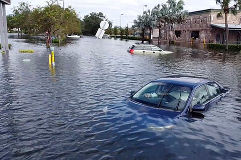 This drone image provided by Kairat Kassymbekov shows flooding from Hurricane Milton in Tampa, Florida.
