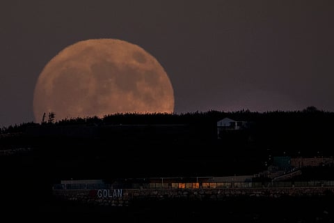 The supermoon rises behind a house in Mas'ade, a village in the Israeli-annexed Golan Heights.