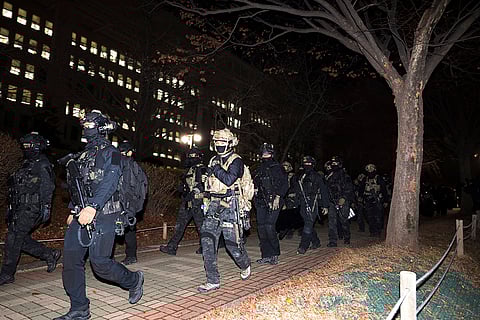 South Korean martial law soldiers try to enter the National Assembly compound in Seoul, South Korea.