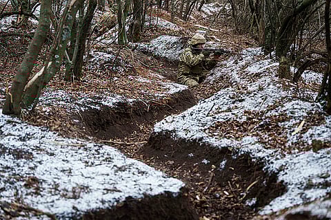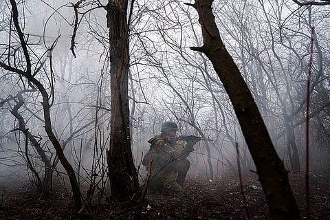 A Ukrainian serviceman of 24th Mechanized brigade trains at the polygon not far from frontline in Donetsk region, Ukraine.