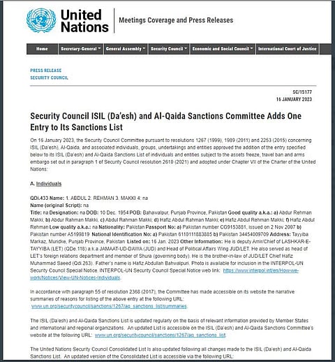 In June last year, China had put a hold, at the last moment, on a joint proposal by India and the US to list Makki under the 1267 Al-Qaida Sanctions Committee of the UN Security Council.