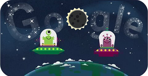 The day when the moon obscures the sun's rays, if weather conditions and location allow, has finally arrived. Google, the search engine giant, paid tribute to the total solar eclipse with a doodle displayed on its homepage on Monday.