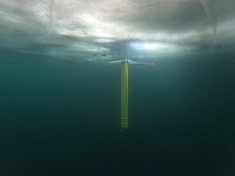 Once released from a borehole or vessel in the open ocean, the robots will ride the currents beneath the ice shelf. They will attach themselves to the bottom of the ice, where sensors will measure how fast warm, salty water is rising and how quickly cold, fresh water is sinking.