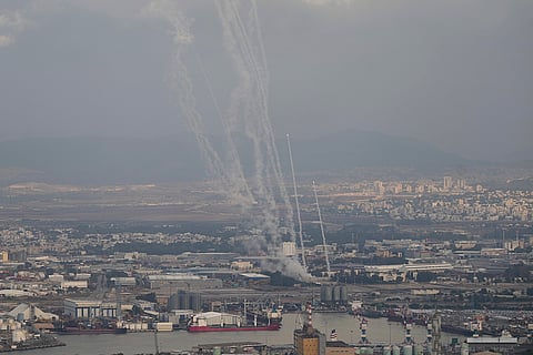 Israeli Iron Dome air defense system fires to intercept rockets that were launched from Lebanon, as seen from Haifa, northern Israel.