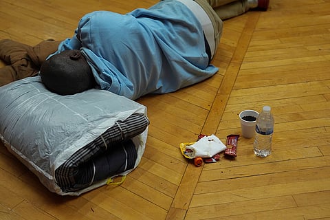 A person rests inside a daytime warming center in Cincinnati.