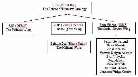 the Hindu Swayamsevak Sangh (HSS) mirrors the RSS with the Friends of India Society (FISI) functioning as its public arm,