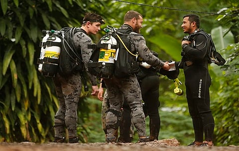 June 24: Search and rescue teams comprising local authorities, police and rescue workers find soccer shoes and backpacks left behind by the boys near the cave entrance.