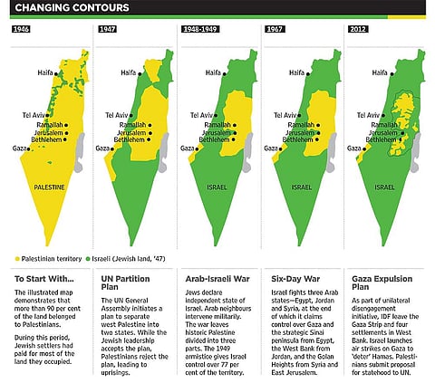 But as parallel and differing narratives come out of Israel and elsewhere to explain the current violence in Gaza, many experts say that to understand the present situation one needs to go back to 2006, when Hamas entered the scene as a legitimate stakeholder on the Palestinian landscape. One could in fact go back even further, to the beginning, circa 1948, when Palestine was partitioned to create Israel. Between then and now, the Palestinian share of the land has shrunk (see graphic), while that of Israel has increased consistently and substantially. Israel, for all practical purposes, remains the occupying force in Palestine.