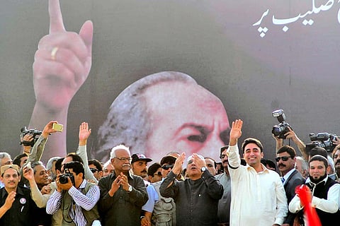 Asif Ali Zardari and Bilawal Bhutto commemorate their party’s founder, 2017.