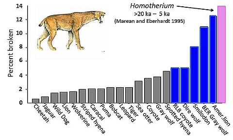 1. eg Wendy J. Binder and Blaire Van Valkenburgh, 2010. A comparison of tooth wear and breakage in Rancho La Brea sabertooth cats and dire wolves across time. Journal of Vertebrate Paleontology. http://www.tandfonline.com/doi/abs/10.1080/02724630903413016#.UzBUcM40uQk