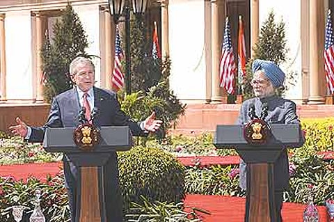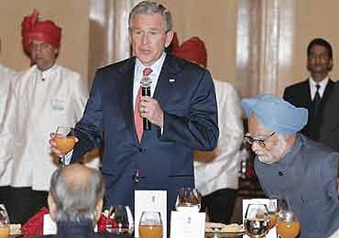 It was an hour of waiting for the others: secretary of state Condoleezza Rice was in one room with a gaggle of US officials, sipping tea; in a third room were defence minister Pranab Mukherjee, commerce minister Kamal Nath, Kapil Sibal, the minister appointed to wait on Bush. It was in the fourth room that hectic negotiations and bargains were under way. At the table there, among others, sat national security advisor M.K. Narayanan, secretary, Department of Atomic Energy, Dr Anil Kakodkar, and principal secretary T.K.A. Nair, smoothening out with the American team the remaining wrinkles on the Indo-US civilian nuclear deal that the two teams hadn’t managed to iron out through the long March 1-2 night.