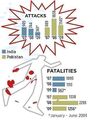 India’s argument, however, has found little resonance in the US establishment till now. US officials feel the Pakistan army’s operation in South Waziristan has a serious intent, worthy of commendation. The Obama administration, in fact, sees Pakistan as a victim of terrorism, citing the dramatic increase in terror attacks over the last three years in Pakistan as compared to India (see graphic). More importantly, Obama can’t pressure Islamabad to the point where it covertly begins to oppose his quest to stabilise Afghanistan—a goal he is keen to achieve at the earliest, so as to pull out American troops from there.