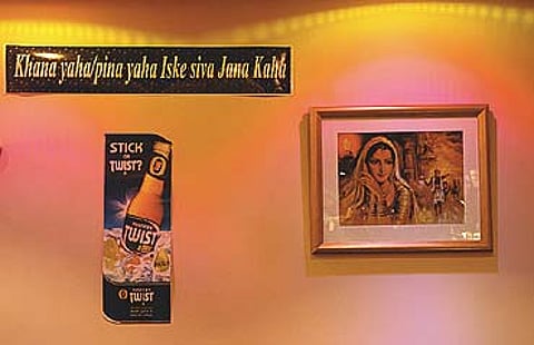It probably isn't his singing that brings the Indians in. He just needs to be indulged because he owns the place. And, of course, he is a Mukesh fan. You might skip his singing, but you could hardly miss that banner up at the front of the club: "Khaana yahaan, peena yahaan, iske siva, jaana kahaan."