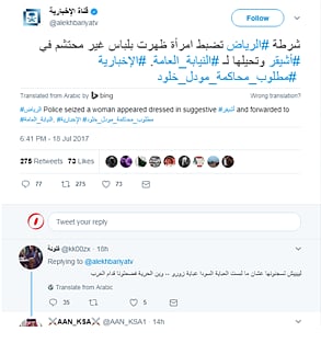 In response to calls for the woman’s arrest, the Committee for the Promotion of Virtue and the Prevention of Vice wrote on Twitter on Mondaythat it had “intercepted a clip of a girl in inappropriate clothing” and had opened an investigation with the “relevant authorities.”
