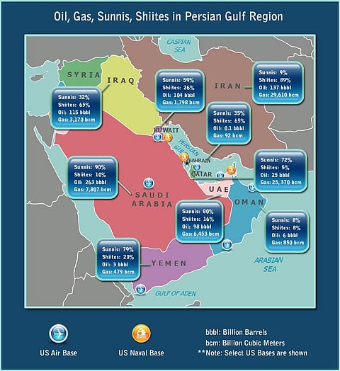 Proven crude oil and natural gas reserves, from CIA World Factbook January 2011 estimates, are equally revealing as to how each Persian Gulf and Arabian Peninsula nation’s Sunni and Shiite populations correlate with control of energy resources.