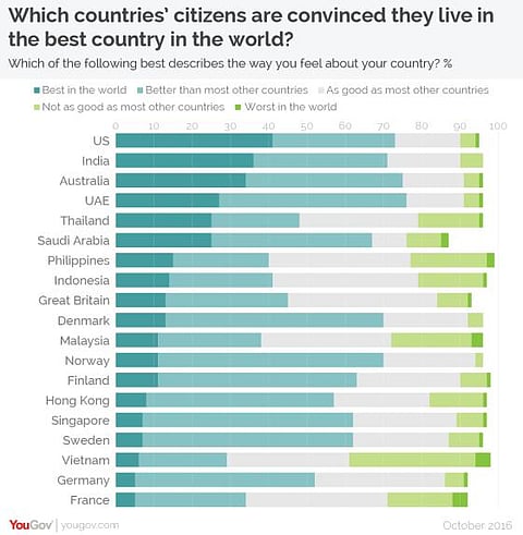 Finally, the good fellows at YouGov also have a patriot-o-meter which tells you who-loves-their-country-the-most. No surprises for guessing here that the Americans, who spend as much of their time chirping about the best-country-in-the-world as an average Indian does in a bank queue currently, top the chart. Apparently with all the dichotomy of being a ‘superpower and superpoor’ as Shashi Tharoor calls it, Indians still believe, ‘East or West, India is the best’. Speaking of others, Australia , the UAE and Thailand consider they’re doing fairly well while Singapore, Sweden,Vietnam and Germany are dismayed with their fate in increasing order of frustration. And going by ‘hard data’, the French do come across as a pretty miserable bunch in the present context.