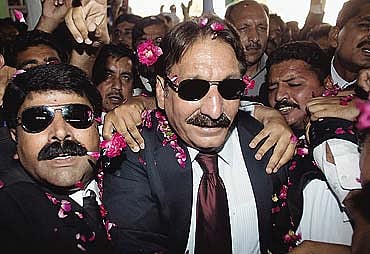 As Karachi burnt and bled on May 12, hundreds of miles away in Islamabad, another rally was under way. Brought from Punjab in truckloads, its participants were dancing and singing in praise of the man who was to address them. Fortified behind a bullet-proof glass wall, Musharraf thundered, "If they (opposition) think they are powerful, then they should know that people's power is with us." And lest there was any confusion on what people power meant, it was removed the following day when armed men shot dead Chaudhry confidant and the additional registrar of the Supreme Court, Syed Hamad Raza. "This was target killing to send a message to the judiciary. All of you should be careful," Raza's wife, Shabana, wailed to Chaudhry when he came to console her.