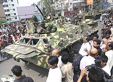 ). New Delhi, however, feels the ruthless killing ofarmy officers, who train and command BDR troops, indicated intricate planning.The story goes back about two years ago when the army installed a caretakergovernment to cleanse the system. The cleansing hurt the interests of many inKhaleda Zia’s Bangladesh Nationalist Party (BNP) and its ally, theJamaat-e-Islami. It was at this time that Islamist terrorists were hanged andthe anti-India force marginalised.The plan, Delhi feels, was to ensure a violent reaction from the Bangladesh army, thus plunging the country into chaos. A senior diplomat told Outlook that New Delhi advised Hasina and the Bangladesh army to tread cautiously and avoid creating a 1975-like situation, when most members of the country’s founder Mujibur Rahman’s family were gunned down. That was perhaps the reason why Hasina announced general amnesty to secure the surrender of BDR mutineers.