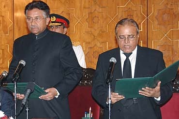 But, obviously, the judicial order has no restraining influence on the executive. With the Constitution suspended, judges countrywide are required to take an oath of allegiance to the PCO. Those who won't, forfeit their right to sit on the bench. Justice Abdul Hameed Dogar is sworn in as the new chief justice. Most Supreme Court judges demonstrate steadfast resolve: 13 out of 17 refuse to take oath. It's a minority of high court judges the executive manages to wean away: only 13 out of 31 judges in Punjab, four out of 31 judges in Sindh, and seven out of 13 judges in the nwfp agree to take oath. In Balochistan, though, all five judges take Musharraf's side.