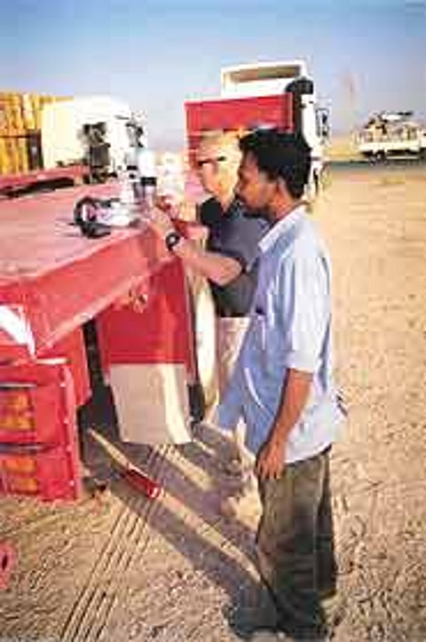 The drivers themselves are marvellous maniacs, displaying none of the technicolour terror that bathes Iraq in all hues. Says Jarnail Singh, 40, of Jassim Transport & Stevedoring, who has been plying the Iraq route for close to 13 months, with great emphasis, "Iraq jane ki guarantee hai par aane ki nahin (There is a guarantee of getting into Iraq but not of coming out)." The other Indian drivers in the Jassim convoy nod their heads in agreement.