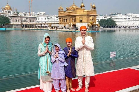 It's no surprise that Justin Trudeau is a frequent attendee to Gurudwaras in Canada. On his first visit to Golden Temple, the PM chose to tone down the striking colours he wore on other occasions, and opted for an off-white Sherwani, while his wife chose a sea blue ensemble for herself.