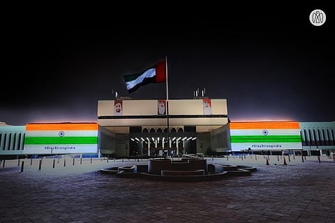 Landmark buildings in the United Arab Emirates (UAE) illuminated with the Tricolour to show solidarity with the country amid a massive surge in Covid-19 cases in India. The world's tallest building, Burj Khalifa, in Dubai and the Adnoc headquarters in Abu Dhabi were lit up with the Indian flag as well as the message "Stay Strong India" on Sunday night.
