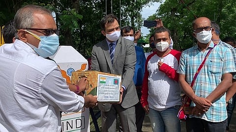 The gift consignment was received at the Akhaura integrated check post (ICP) from Dr Jamatia and Director of Industries and Tourism of Tripura government T K Chakma by Udot Jha, Second Secretary to India High Commission at Chittagong on behalf of the India High Commission at Dhaka and who is supposed to handover it to the Bangladesh PM.