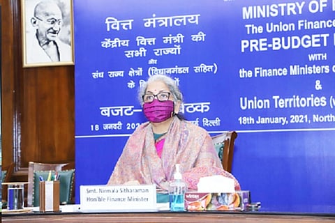 Finance Minister Nirmala Sitharaman chairing pre-Budget consultations with Finance Ministers of all States and Union Territories on January 18/Finance Ministry