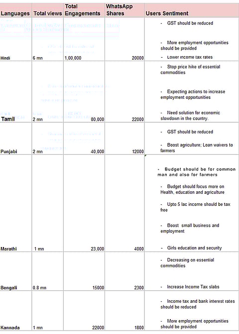 The top three expectations that were captured during the data analysis were -- income tax slabs need to be lowered, there should be initiatives to boost employability, need for measures to control price hike of essential commodities.