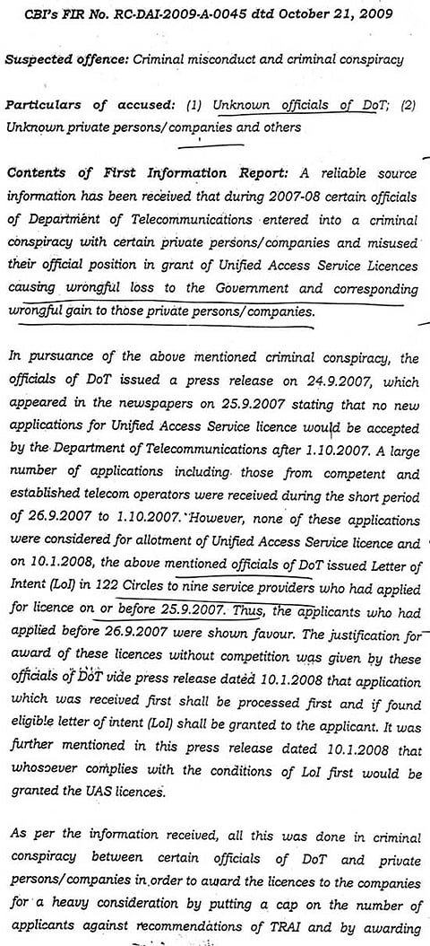The FIR registered by the CBI on October 21, 2009 in the 2G spectrum scam referred to some "unknown officials of DoT" and "Unknown private persons/companies" as the accused. Was this a curious act of omission by the CBi since they had filed the case under the Prevention of Corruption Act. The Act, as we all know, applies only to government officials, including cabinet ministers. All of this begs the question: Did the CBI deliberately fail to name the then Telecom minister A Raja and his associates, R K Chandoliya and Siddharth Behura?
