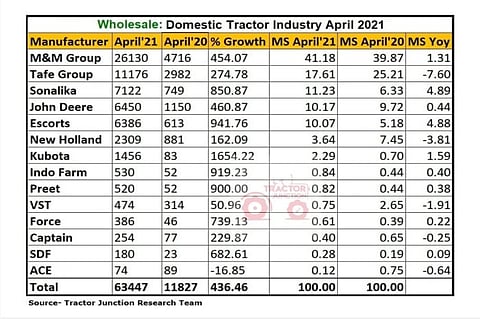 In terms of growth, Escorts Tractors has shown significant increase of 942 percent this month as compared to April 2020. Escorts Tractors sold 686 tractors in the domestic market in April 2020 while 6,386 tractors were sold in April 2021. This has helped them to grow 4.88 percent of the total market share during April 2021.