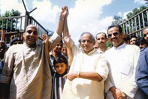 Her first address was a measured one: she made clear that it was a victory for the BSP’s anti-manuwadi ideology-- a system that had kept her people at the bottom of the pile. But simultaneously, she sent out a clear message-- that she intended to run a fair and equitable administration in which people from all sections of society would be given their share. As for what she would do with Mulayam Singh Yadav (whom she had promised through the elections to throw into jail, along with his bad angel, Amar Singh), she said with contempt: " What can I do to him? He’s already a dead man."