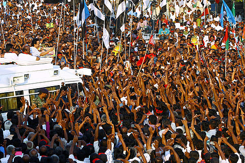Tamil Nadu is a foreign country: they do things differently there. People here might ask ‘Modi who?’ or ‘BJP what?’ on Anna Salai in downtown Chennai; Shahrukh Khan and Priyanka Chopra are faraway figures, here Ajith and Tamannah Bhatia rule; no signage is in the national language except the sporadic Bharatiya Jeevan Beema; even a so-called state issue (take, for example, the soup Karti Chidambaram is in), is dismissed with a shrug. If cycles for girls can win elections in Bihar, here there is a buzz that Amma may announce free motorcycles; in Bihar, the loss to the exchequer due to prohibition is estimated at Rs 3,000 crore, in Tamil Nadu it would be as much as Rs 30,000 crore. In West Bengal, the month-old Narada sting, showing wads of currency notes of about Rs 3-5 lakhs being pushed into eager MLAs’ hands, is an election issue; here, Rs 10 crore seized in cash last week, allegedly meant for bribing voters, was on the front pages for two days. Here, everything—development, ambition, freebies, corruption, poverty, leaders’ cutouts—is Rajni-size.