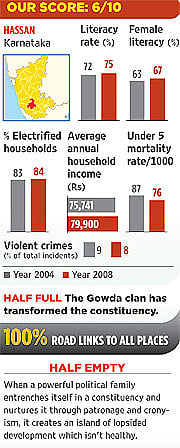As we toured parts of the district on well-laid roads, people point out that a "Gowda speciality" has been to "squeeze" any government of the day to fund development in the district. As a result, you see a number of government professional colleges, besides private ones. There are government engineering, medical, agriculture, law, veterinary and nursing colleges. Because of his "unmatched grasp of politics and policy", he has ensured that every national or state government scheme, be it for roads, education, housing, irrigation, health, power or SC/ST development, has worked for the district. You see Navodaya and Morarji schools and hostels for SC/ST students almost at every panchayat level.